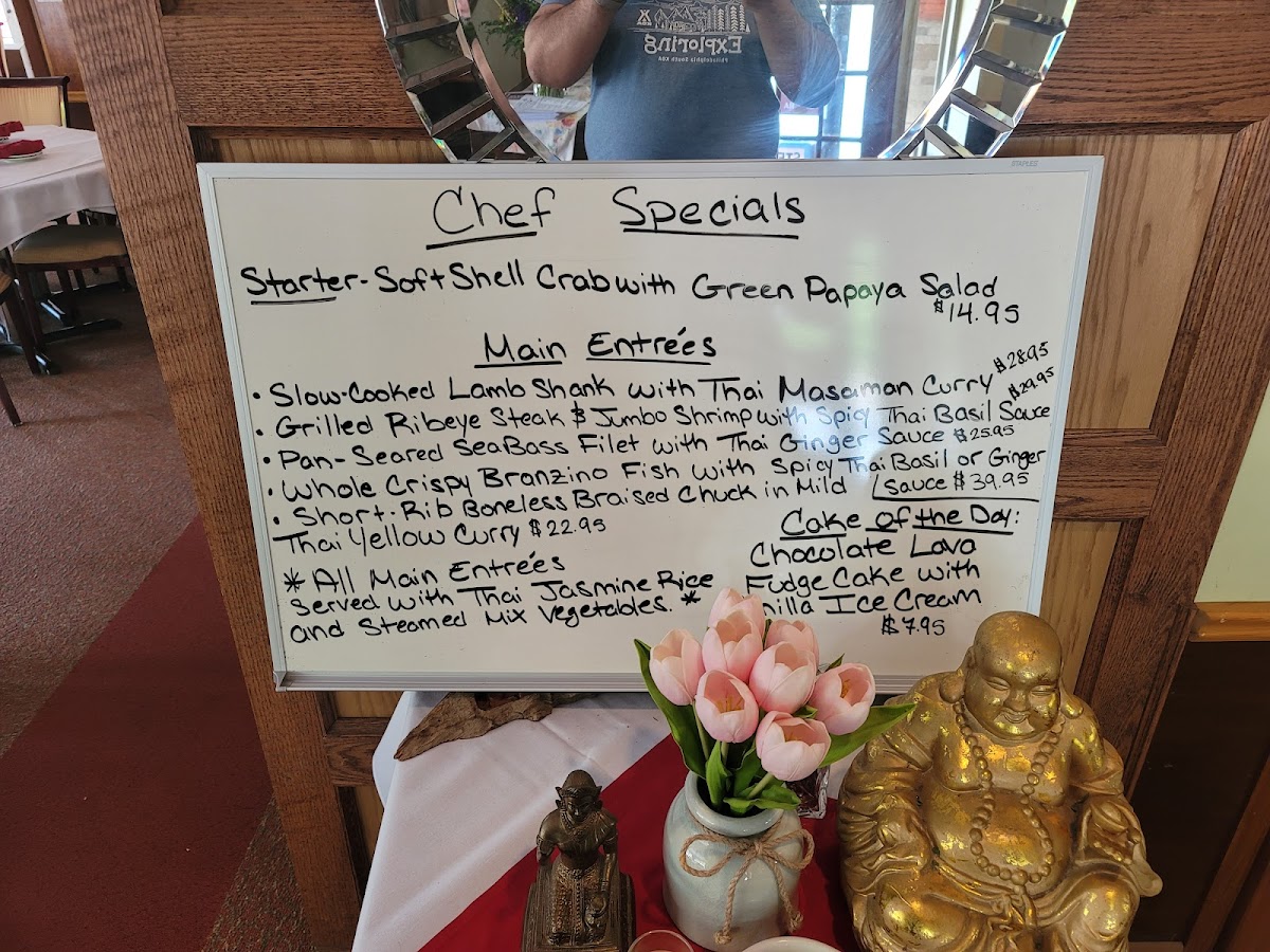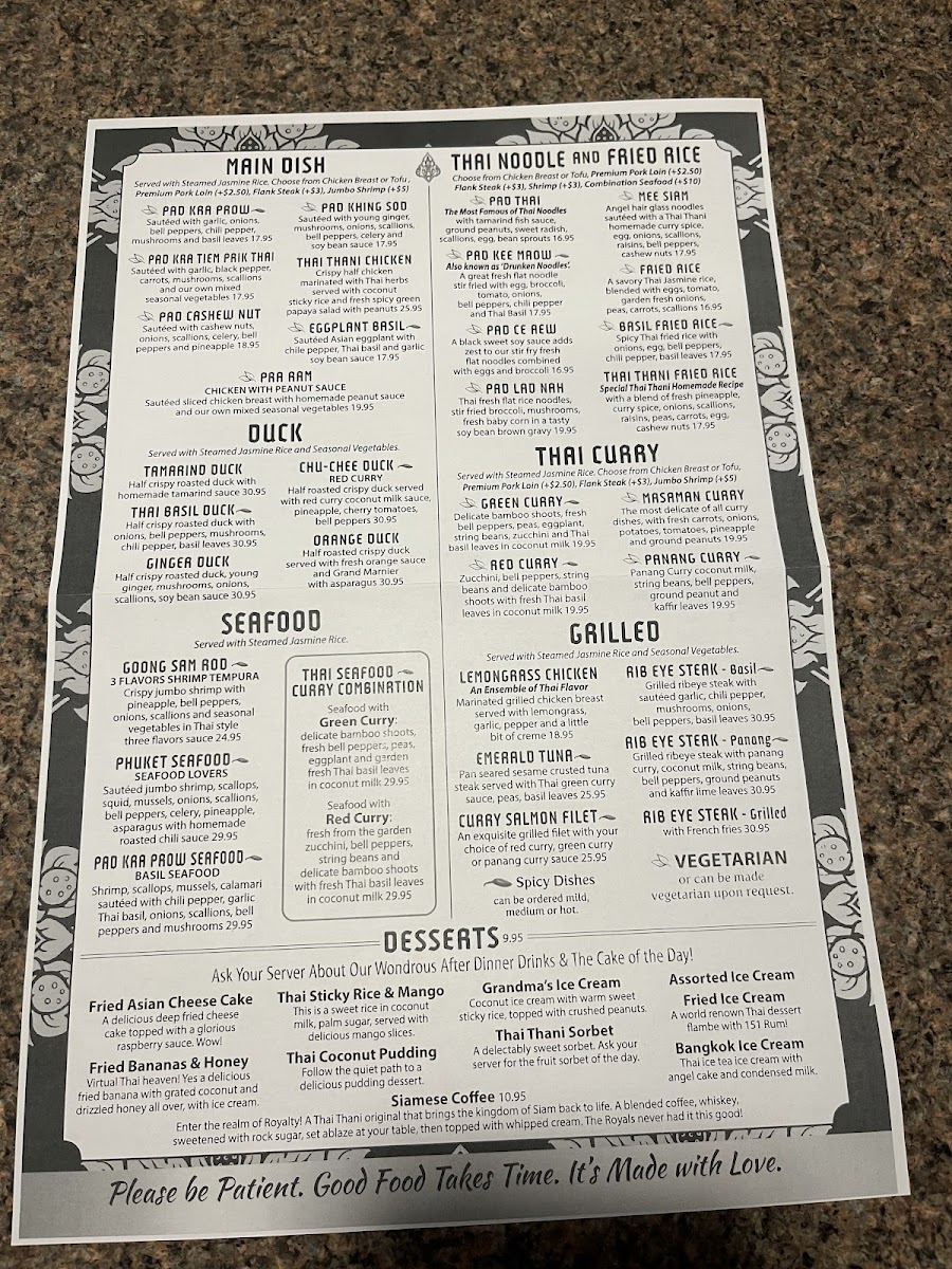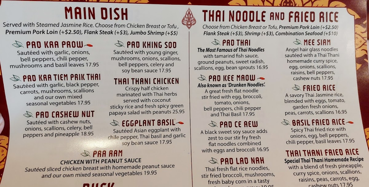 Hand cut grilled ribeye steak with sautéed garlic, chili pepper, mushrooms, onions, bell peppers, & Thai basil leaves